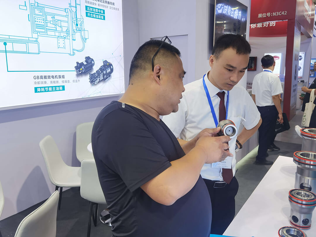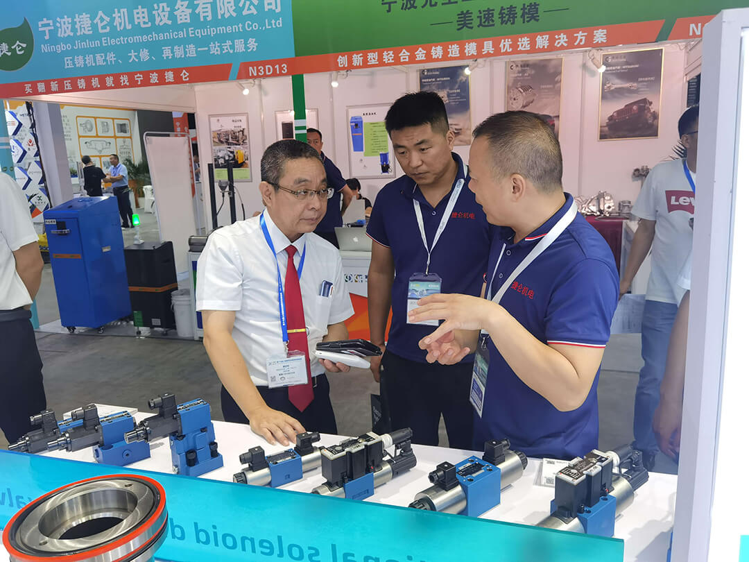 涌鎮(zhèn)液壓展臺(tái)上展示了最新的液壓元件適用于壓鑄設(shè)備,助力提升壓鑄效能,吸引了眾多專(zhuān)業(yè)觀眾前來(lái)參觀和交流。涌鎮(zhèn)液壓的技術(shù)人員向觀眾介紹了公司的產(chǎn)品和技術(shù),現(xiàn)場(chǎng)進(jìn)行了技術(shù)交流和研討,展示了涌鎮(zhèn)液壓在壓鑄行業(yè)的實(shí)際應(yīng)用以及解決方案。